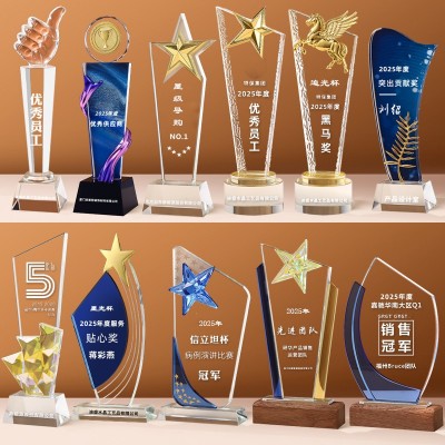 水晶奖杯定制创意奖杯奖牌高档定做刻字教师礼物足球公司员工奖杯