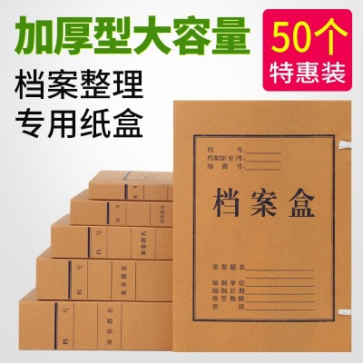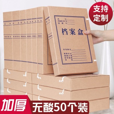 50个牛皮纸档案盒无酸纸文件盒文件资料盒加厚纸质标准收纳盒5厘米大号A4办公用品文书科技卷宗凭证定制印刷