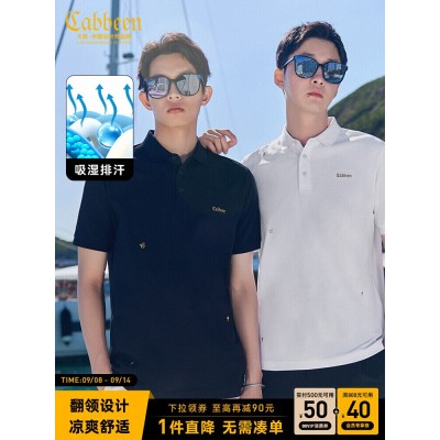 【凉感】卡宾刺绣短袖POLO衫男士翻领夏季气质商务高级T恤上衣男
