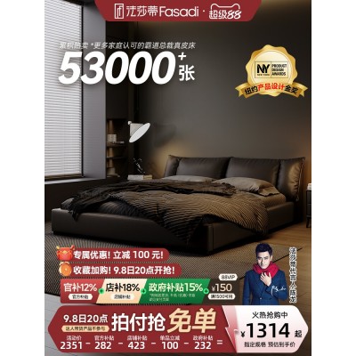 政府补贴法莎蒂牛皮真皮床高端大气1.8m床轻奢婚床意式主卧软包床