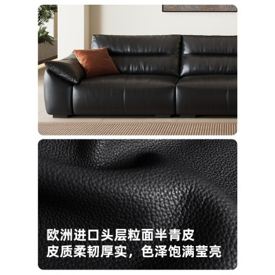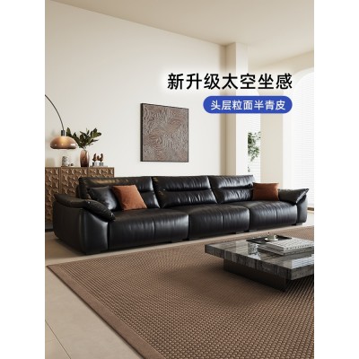 意式头层牛皮沙发轻奢高靠背直排别墅客厅2025设计师款暗色皮艺