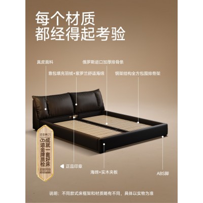 政府补贴法莎蒂牛皮真皮床高端大气1.8m床轻奢婚床意式主卧软包床