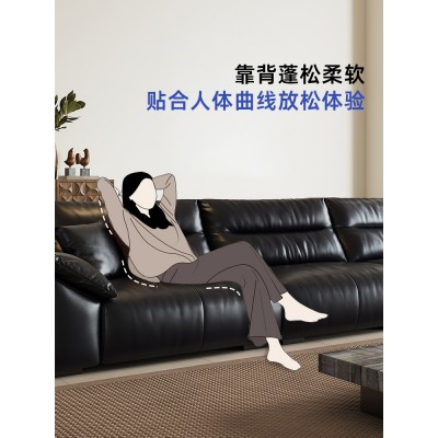 意式头层牛皮沙发轻奢高靠背直排别墅客厅2025设计师款暗色皮艺